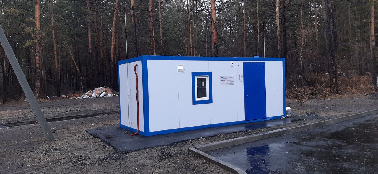 • оборудование в блок-контейнере: насосы-дозаторы, контактные резервуары (Контактные резервуары выполнены в виде горизонтальных цилиндрических резервуаров с подводящими и отводящими трубопроводами сточных вод, подводящими трубопроводами раствора дезинфектанта и воздуха, оборудованы системой барботажных трубопроводов, сорбционными фильтрами для очистки отработанного воздуха и сигнальными поплавковыми выключателями.),  компрессоры, шкаф управления, система автоматизации работы установки.